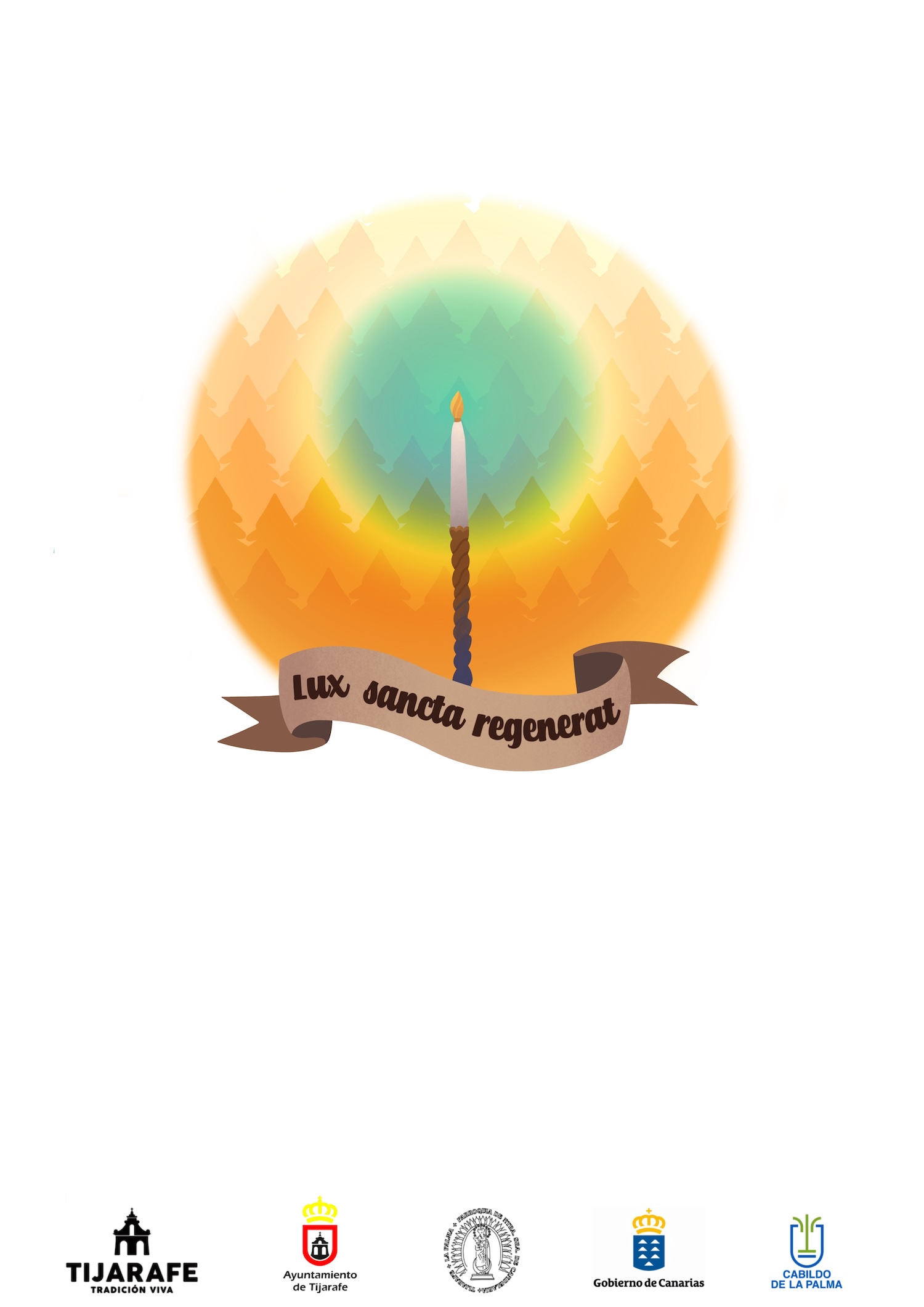 El diseño de Celia Rodríguez, que también será la portada del programa de actos, hace referencia y recuerda el incendio que despertó a los tijaraferos y tijaraferas el 15 de julio del pasado año, tras originarse esa noche en el municipio vecino de Puntagorda. En él se observa a la Virgen de Nuestra Señora de Candelaria cubriendo y protegiendo con su manto los montes del municipio, mientras a sus pies danza El Diablo, como marca la tradición desde hace 101 años. Del mismo modo, en la contraportada del programa, la ilustradora tijarafera ha plasmado la candela de Nuestra Señora de Candelaria, Alcaldesa Honoraria y Perpetua del municipio, iluminando el monte que fue asolado por las llamas y acompañada de la frase en latín Lux sancta regenerat (la luz santa regenera).